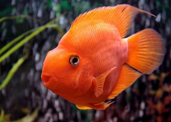 Рыба-попугай называется так из-за своей окраски и необычного строения тела. Оно продолговатое, с ярким коричневым и красным окрасом, а голова немного изогнута снизу. Эти рыбы очень любопытны. Благодаря необычному виду и интересному поведению, рыба-попугай является очень популярной аквариумной рыбой; |
